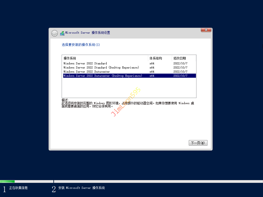 所以这里我们选择包含 Windows Server 2022 Datacenter (Desktop Experience)