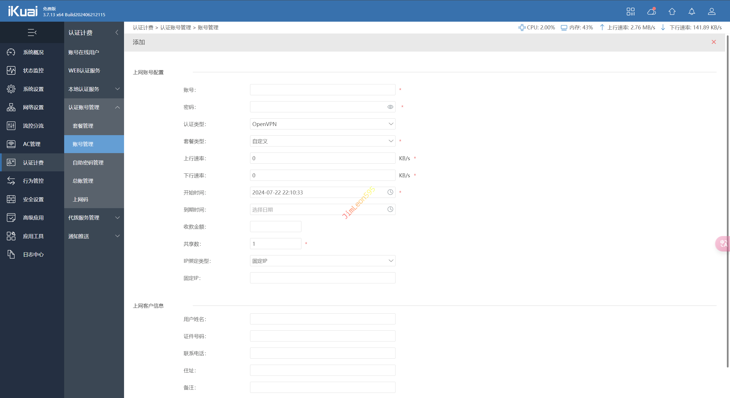 • 认证收费 --> 认证账号管理 --> 账号管理