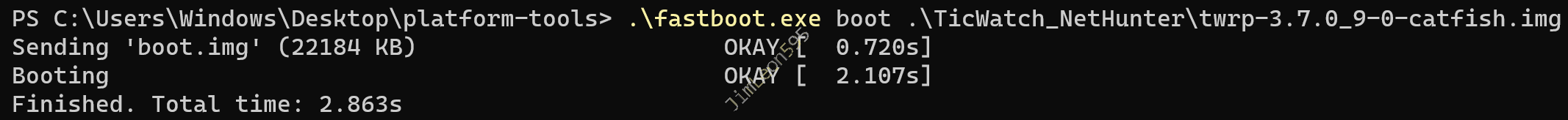 | fastboot boot twrp-3.7.0-9-0-catfish.img