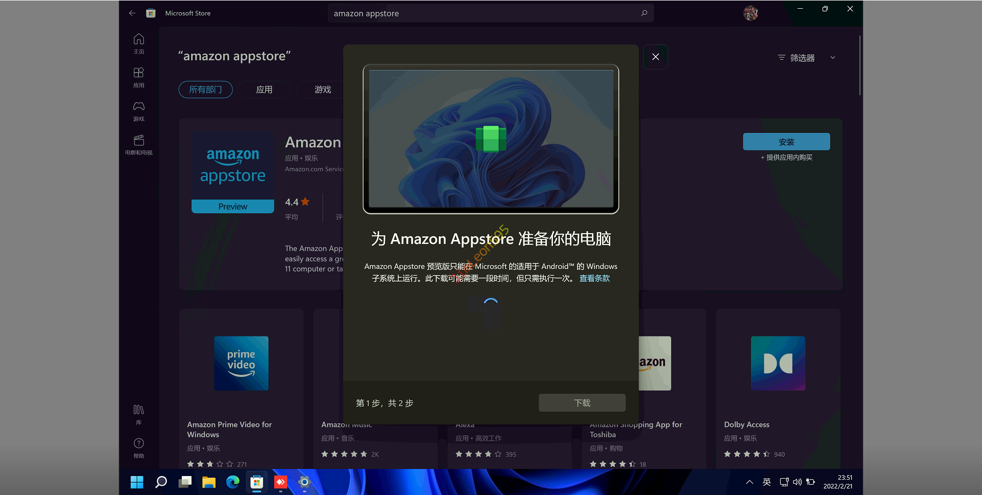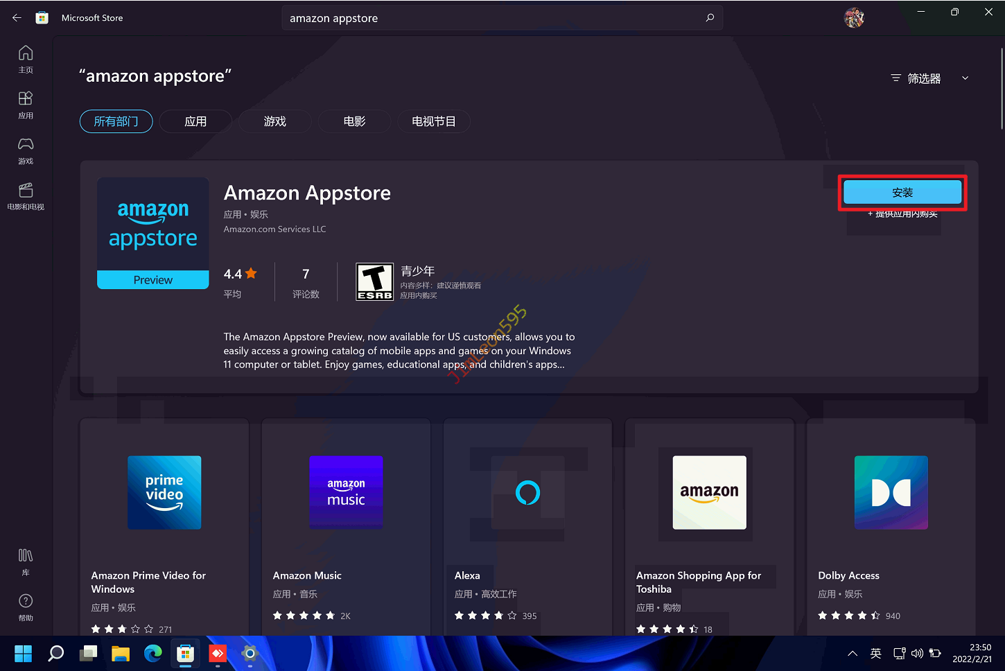 直接安装Amazon Appstore作为安装入口