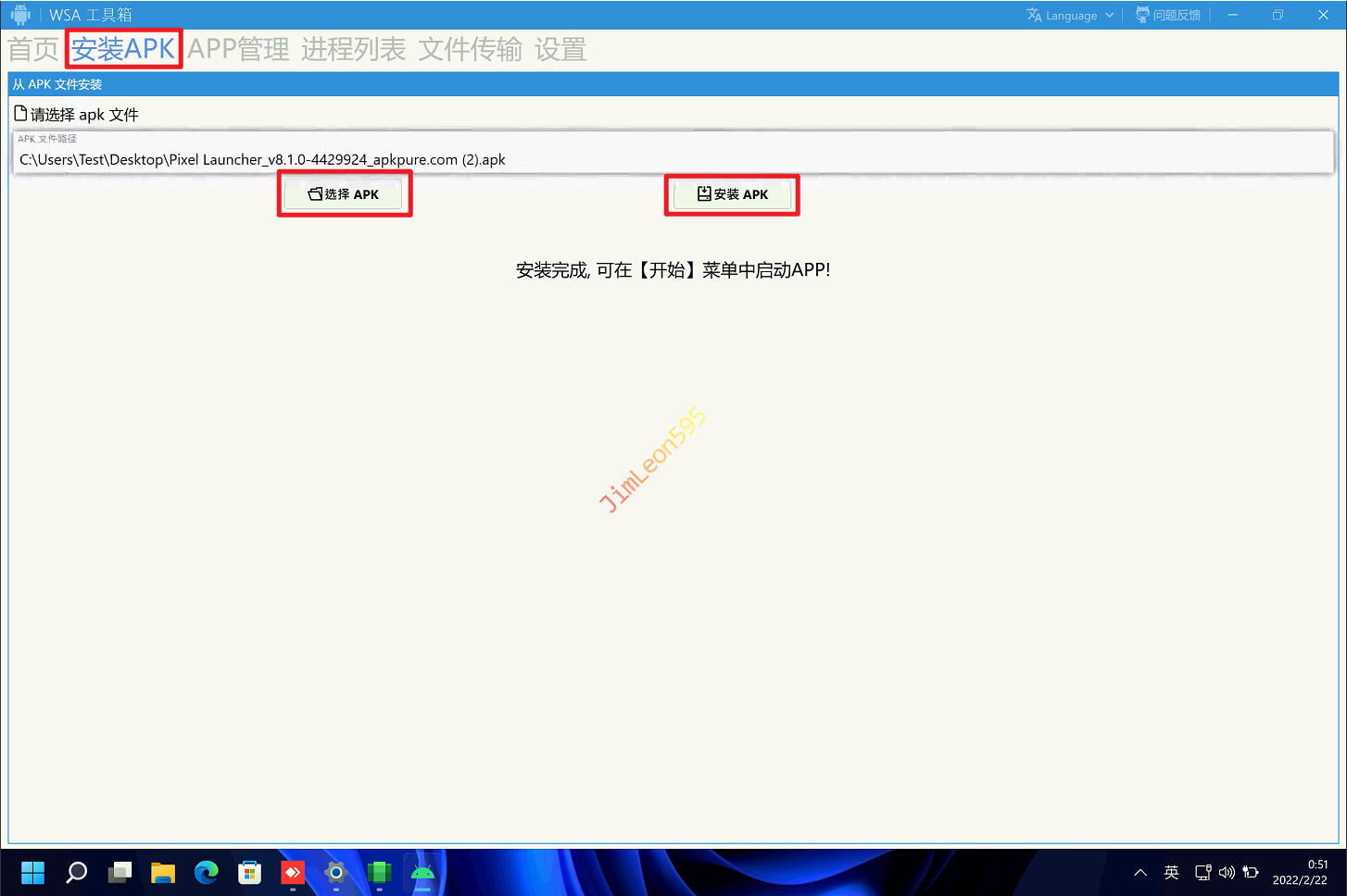 安装APK并选中我们APK的路径
