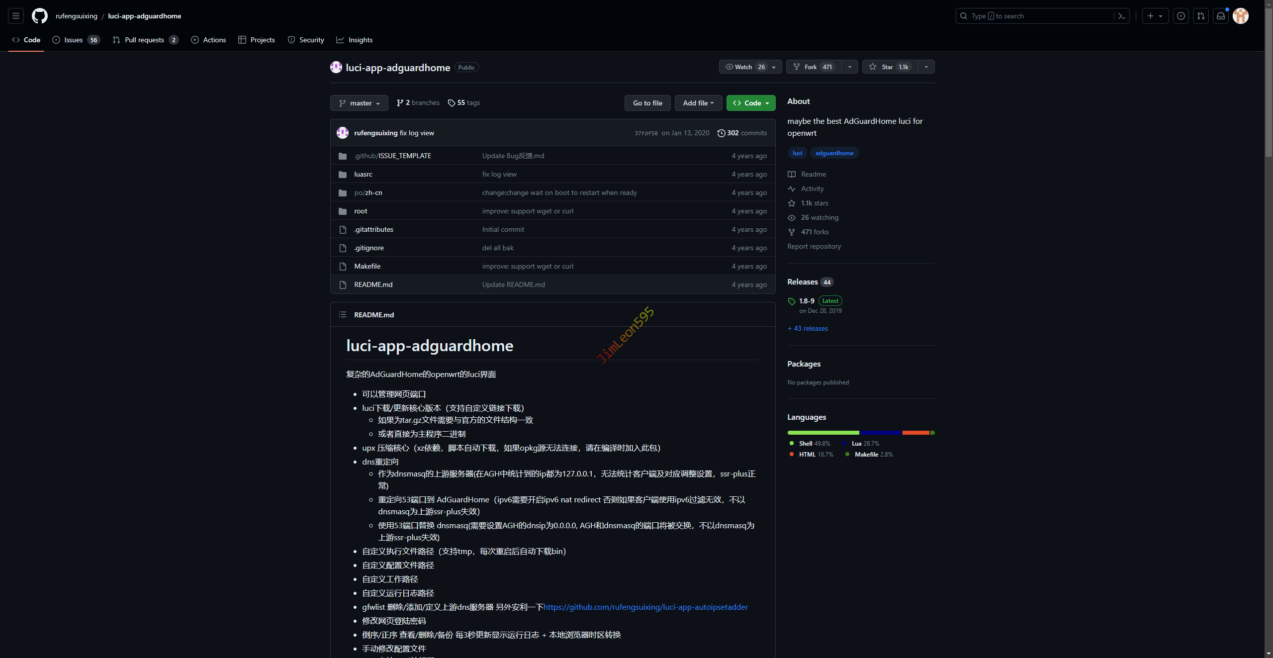 1 | https://github.com/rufengsuixing/luci-app-adguardhome/releases |