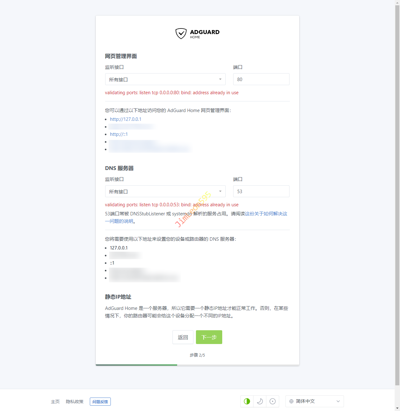 因为 AdGuard Home 管理页面和DNS端口冲突