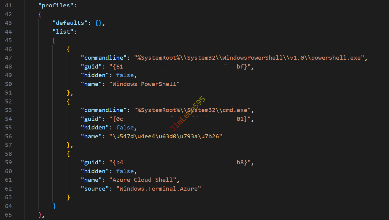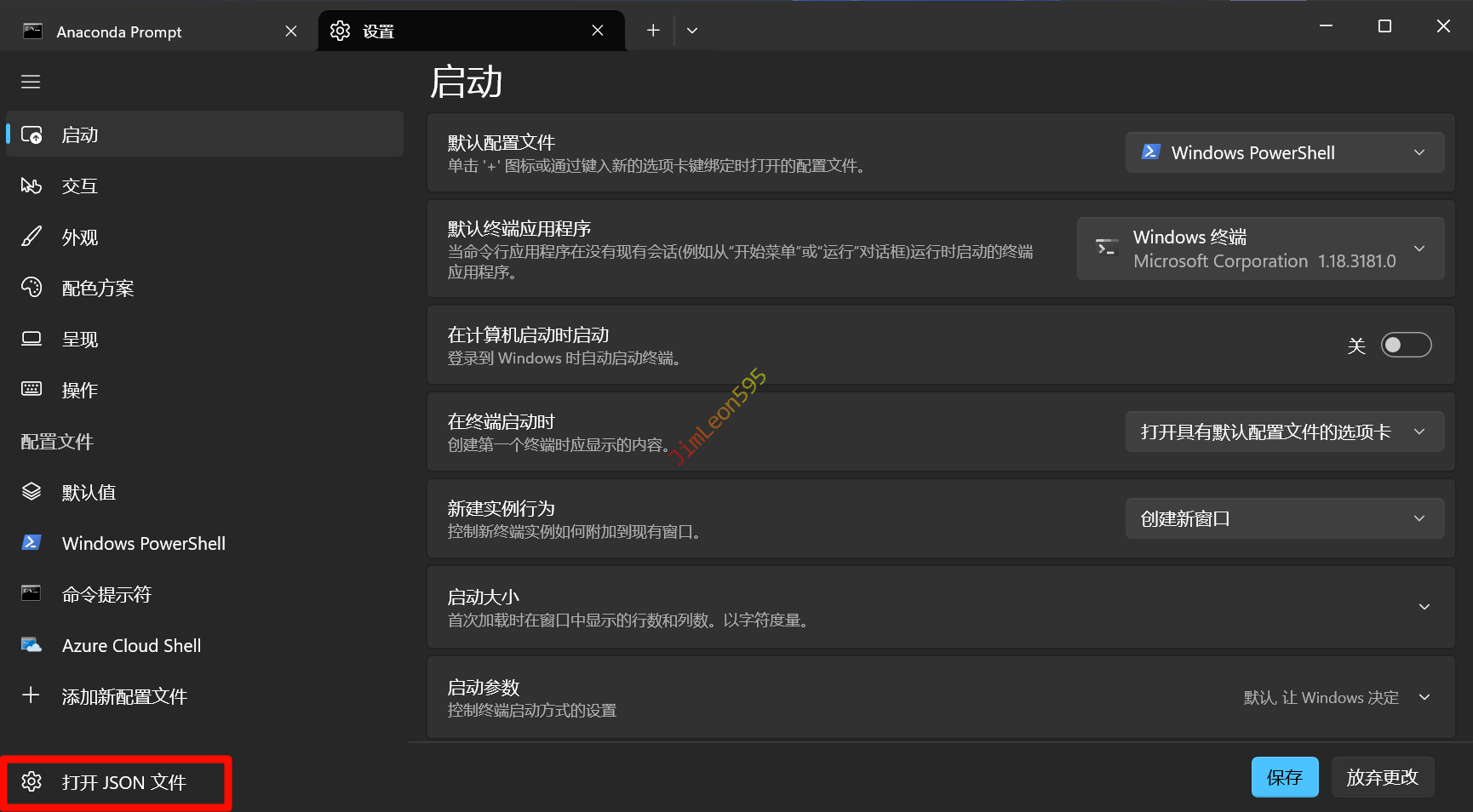 1. 编辑 profiles.list 添加 Anaconda Prompt 配置项