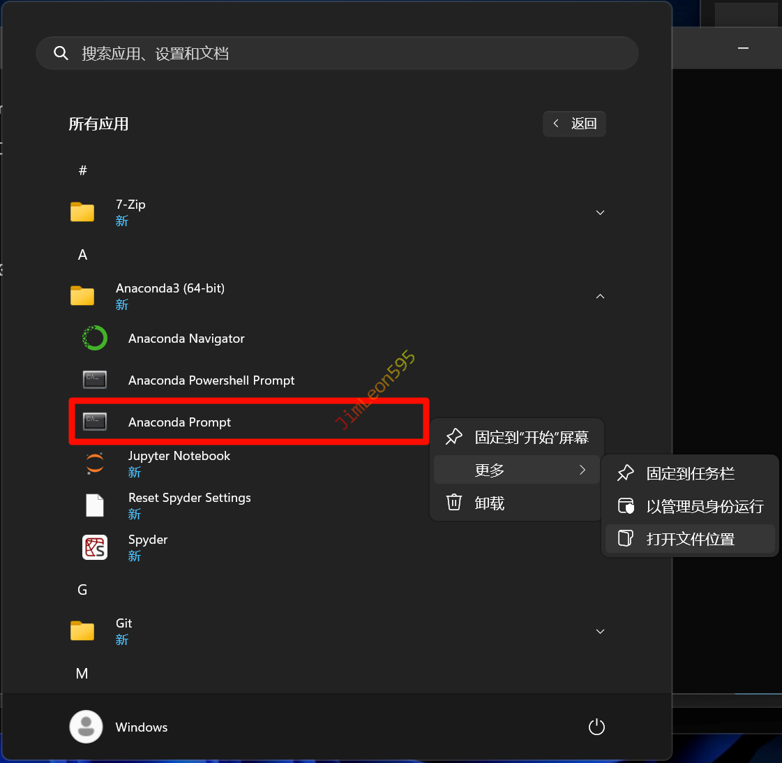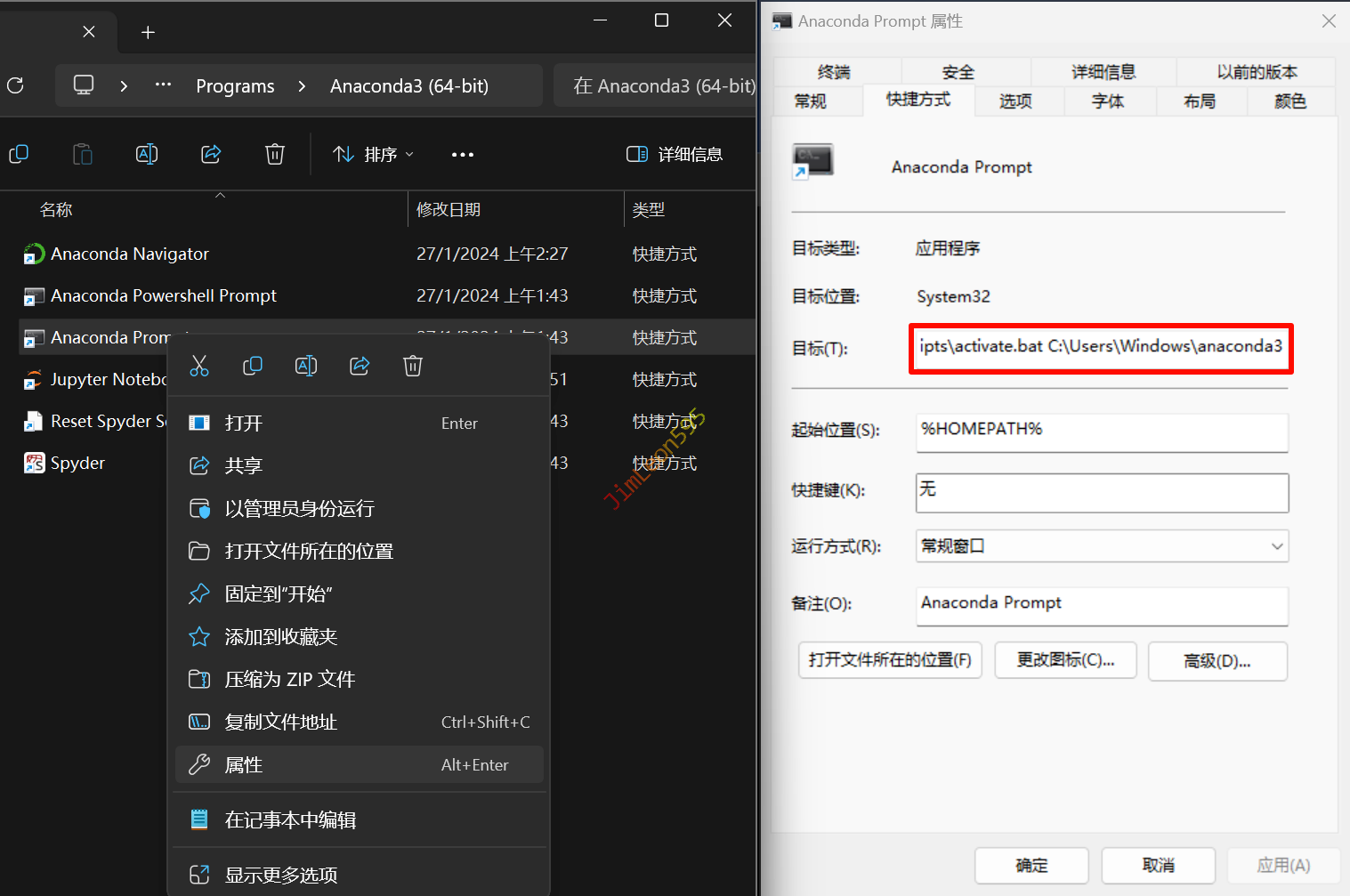 1. 查看 Anaconda Prompt 源文件属性获取获取目标指令