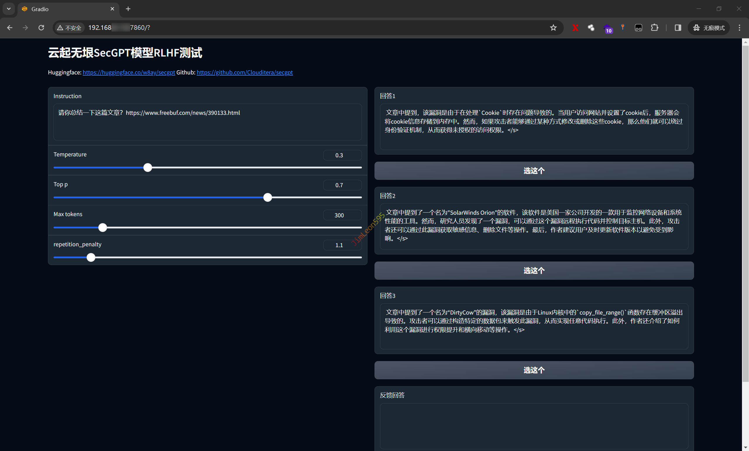 | cd ./webdemo python3 webdemo.py --base_model w8ay/secgpt