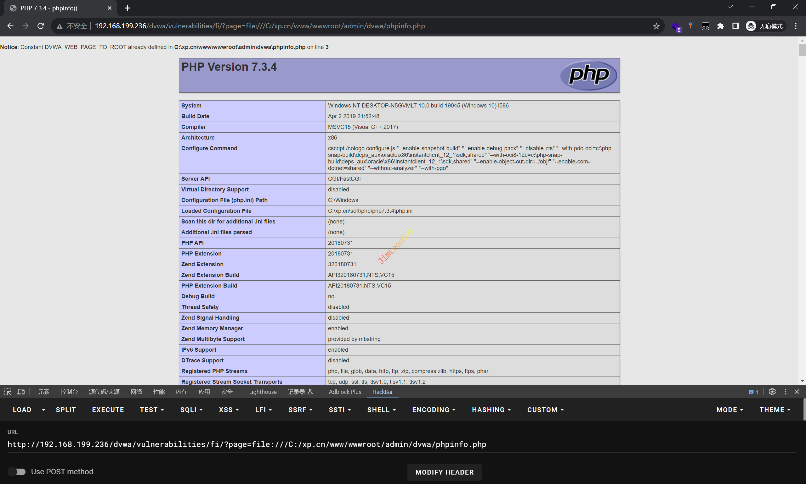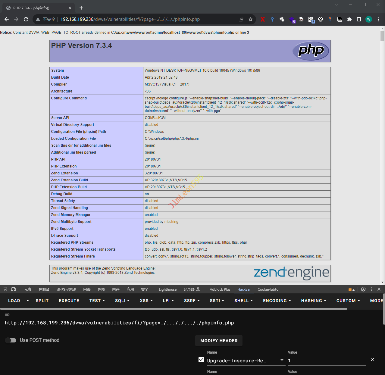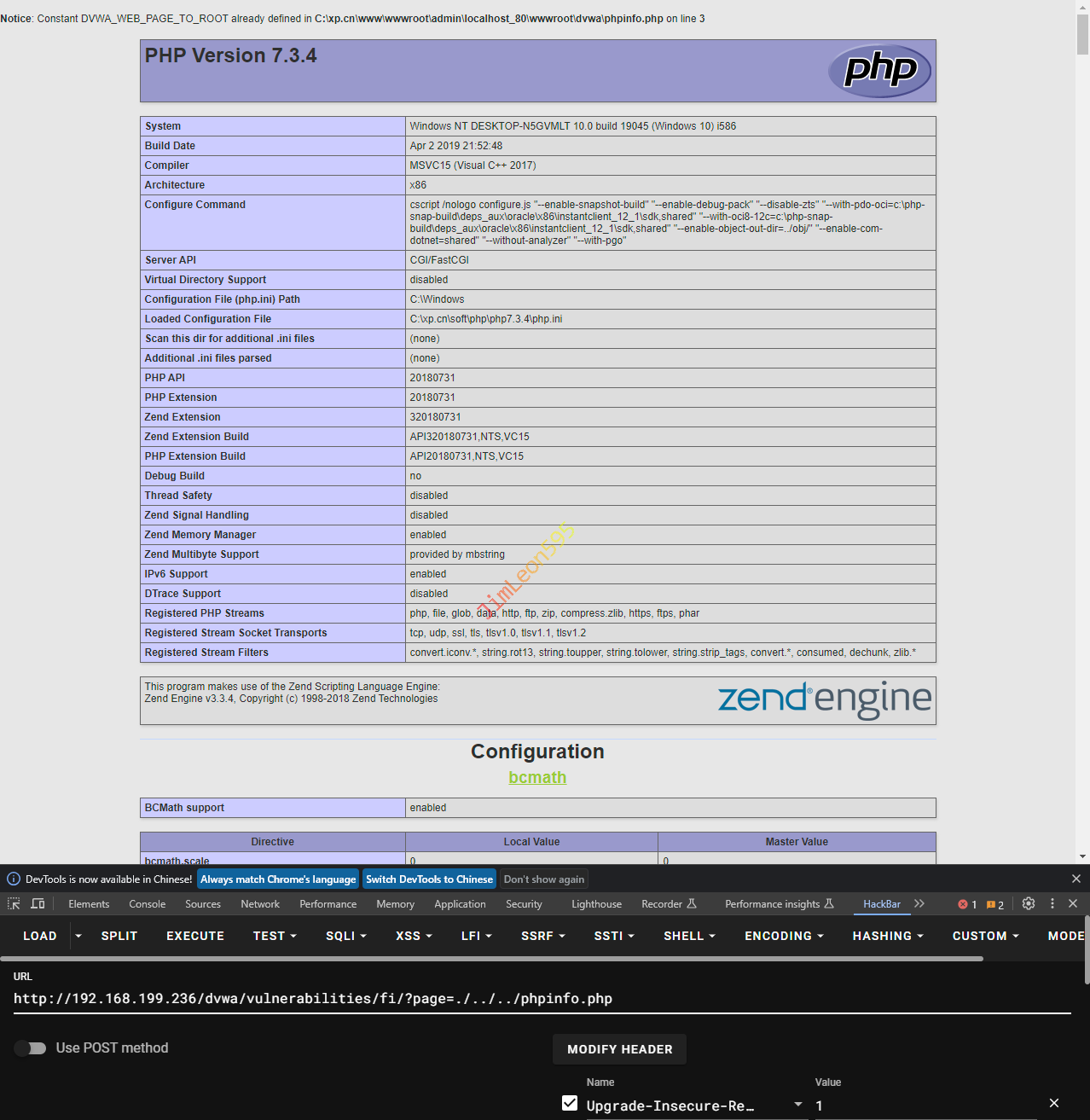 1 | http://192.168.199.236/dvwa/vulnerabilities/fi/?page=./..././..././phpinfo.php |