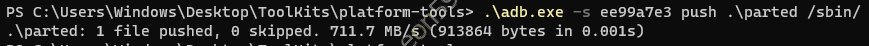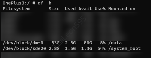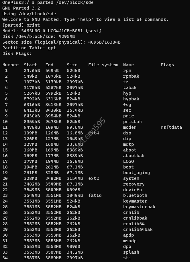 | # 进入硬盘sde分区 parted /dev/block/sde # 查看详细分区使用情况 print