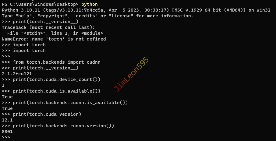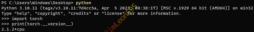 • 显示 x.x.x+cpu 证明这是 CPU 版本 torch