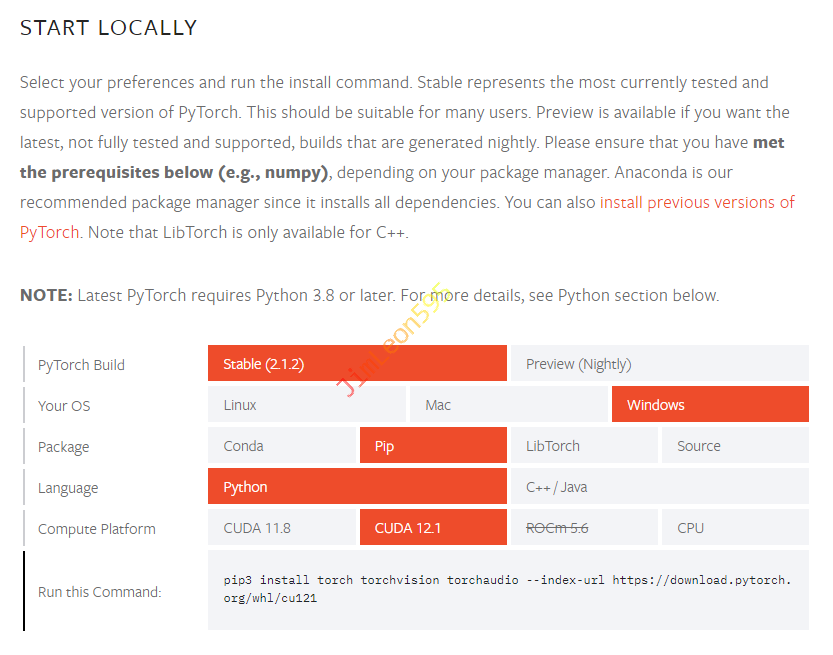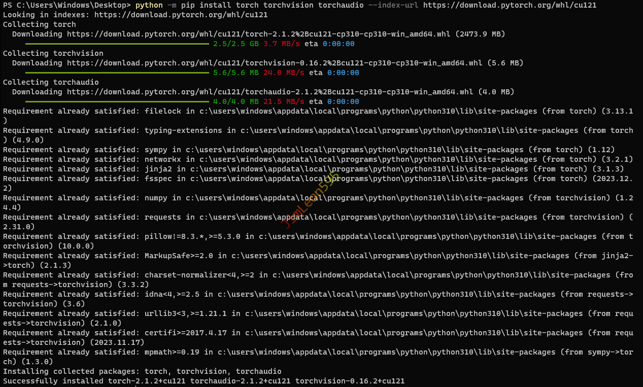python -m pip install torch torchvision torchaudio --index-url https://download.pytorch.org/whl/cu121