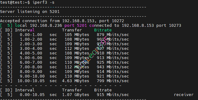 1 | iperf3 -s |