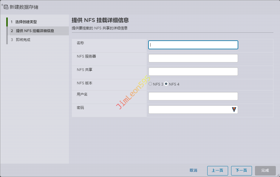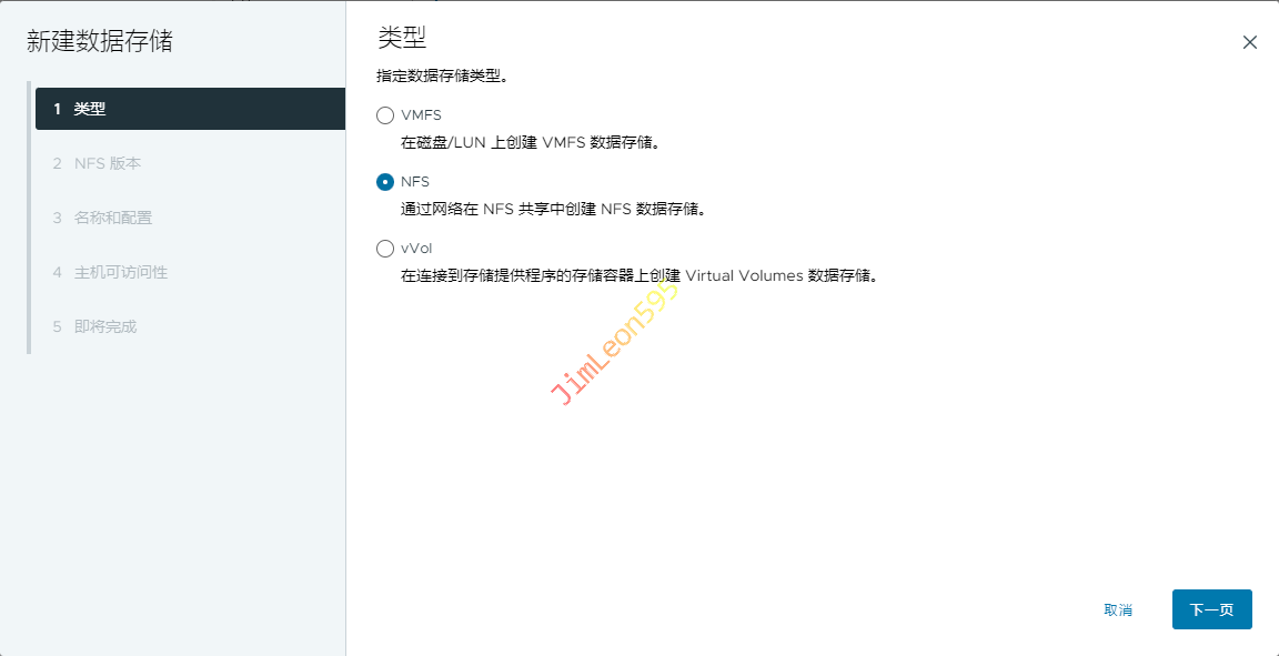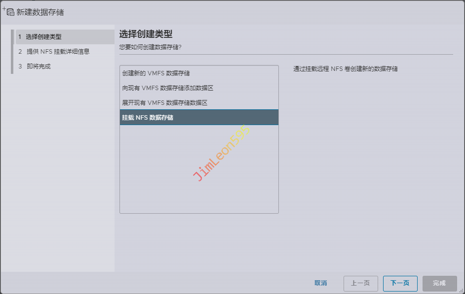 1. 选择创建类型 选择 挂载 NFS 数据存储