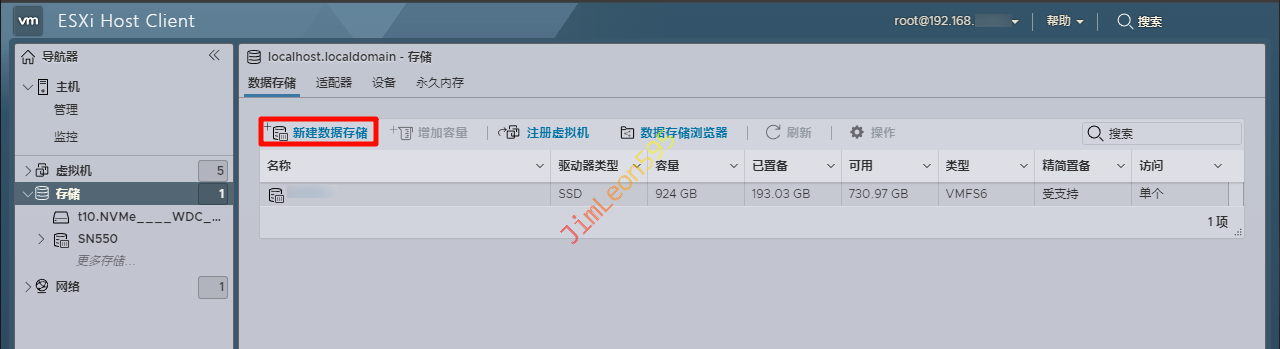 1. 主机访问性 选择需要拓展空间的 ESXi 主机