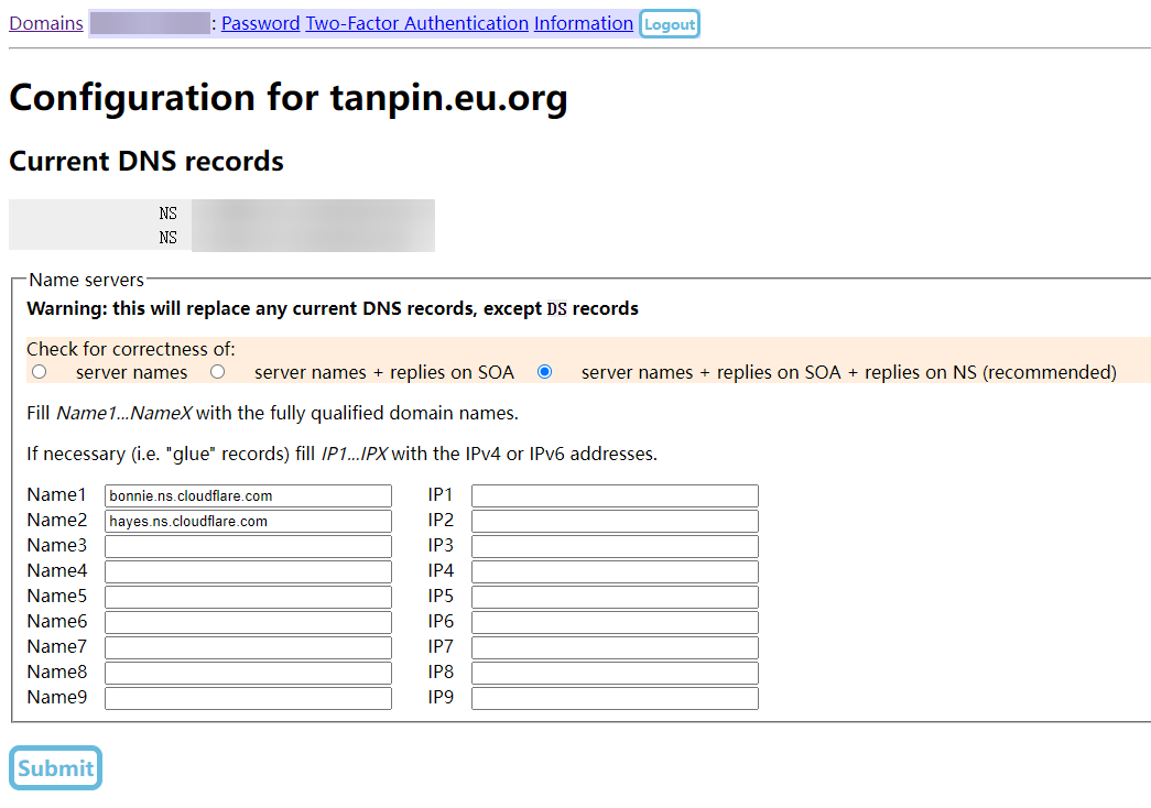 然后我们在填入我们的刚刚白嫖的DNS 服务