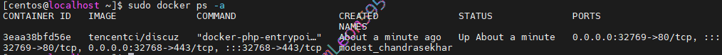 | sudo docker run -P -d tencentci/discuz