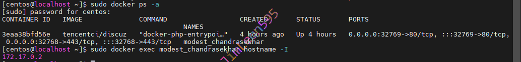 | sudo docker ps -a sudo docker exec <docker_name> hostname -I