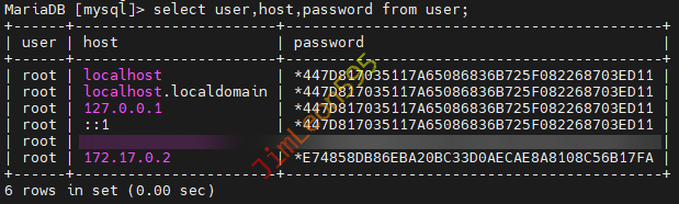 | select user,host,password from user;