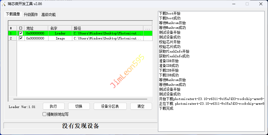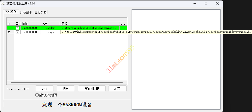 1. 显示 发现一个 MASKROM 设备连接成功