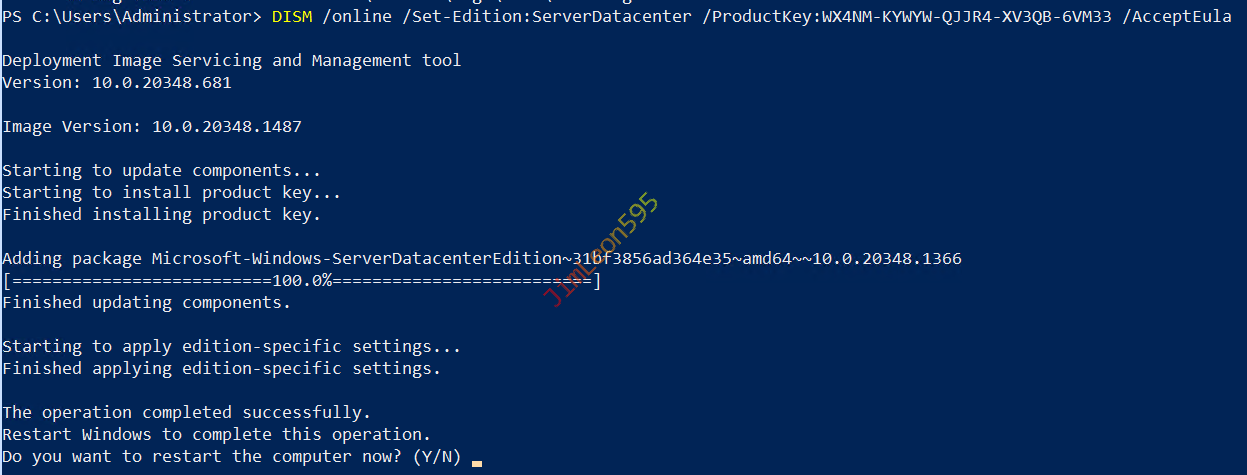 1 | DISM /online /Set-Edition:ServerDatacenter /ProductKey:XXXXX-XXXXX-XXXXX-XXXXX-XXXXX /AcceptEula |