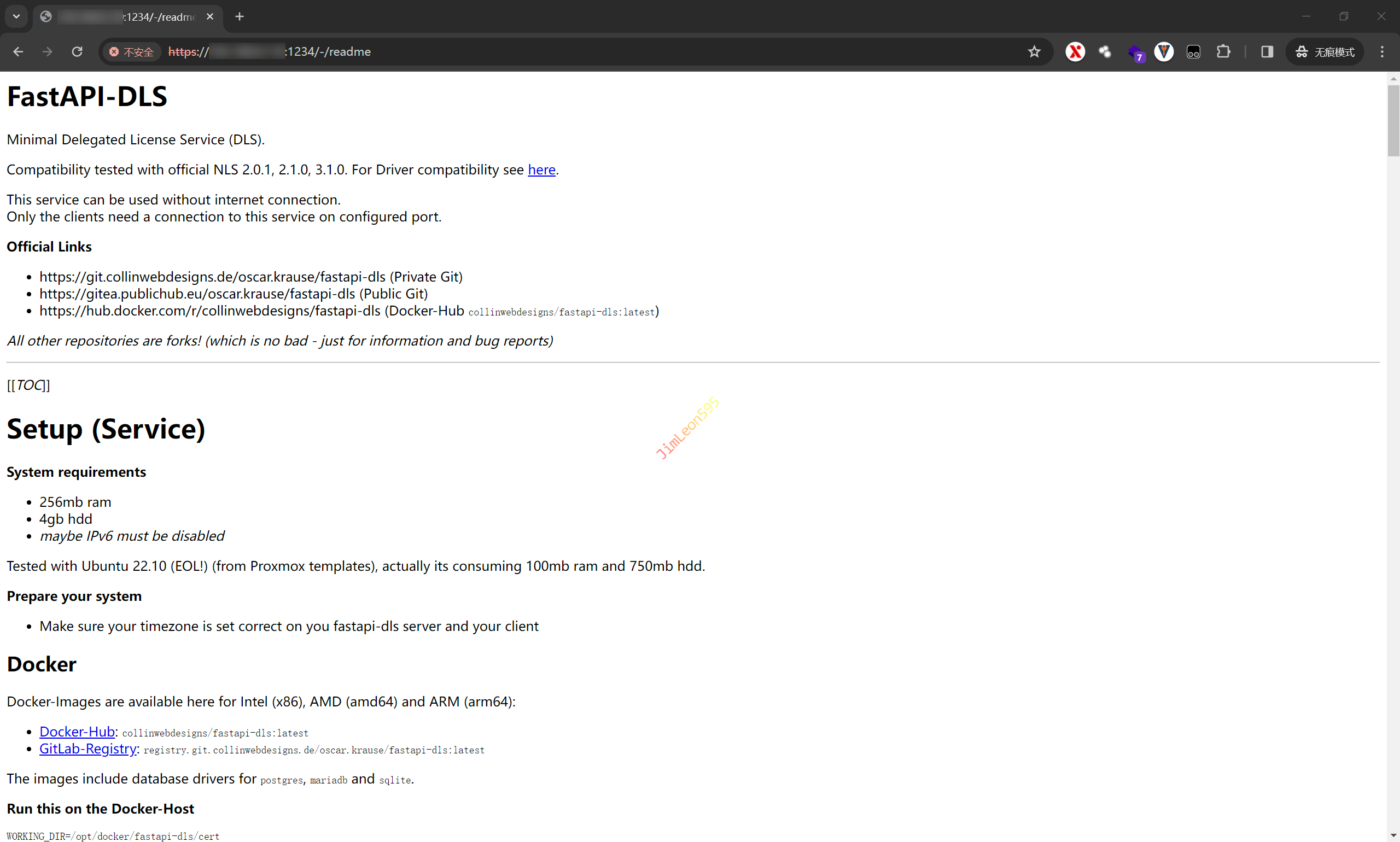 sudo docker run -d -e DLS_URL=x.x.x.x -e DLS_PORT=1234 -p 1234:443  makedie/fastapi-dls