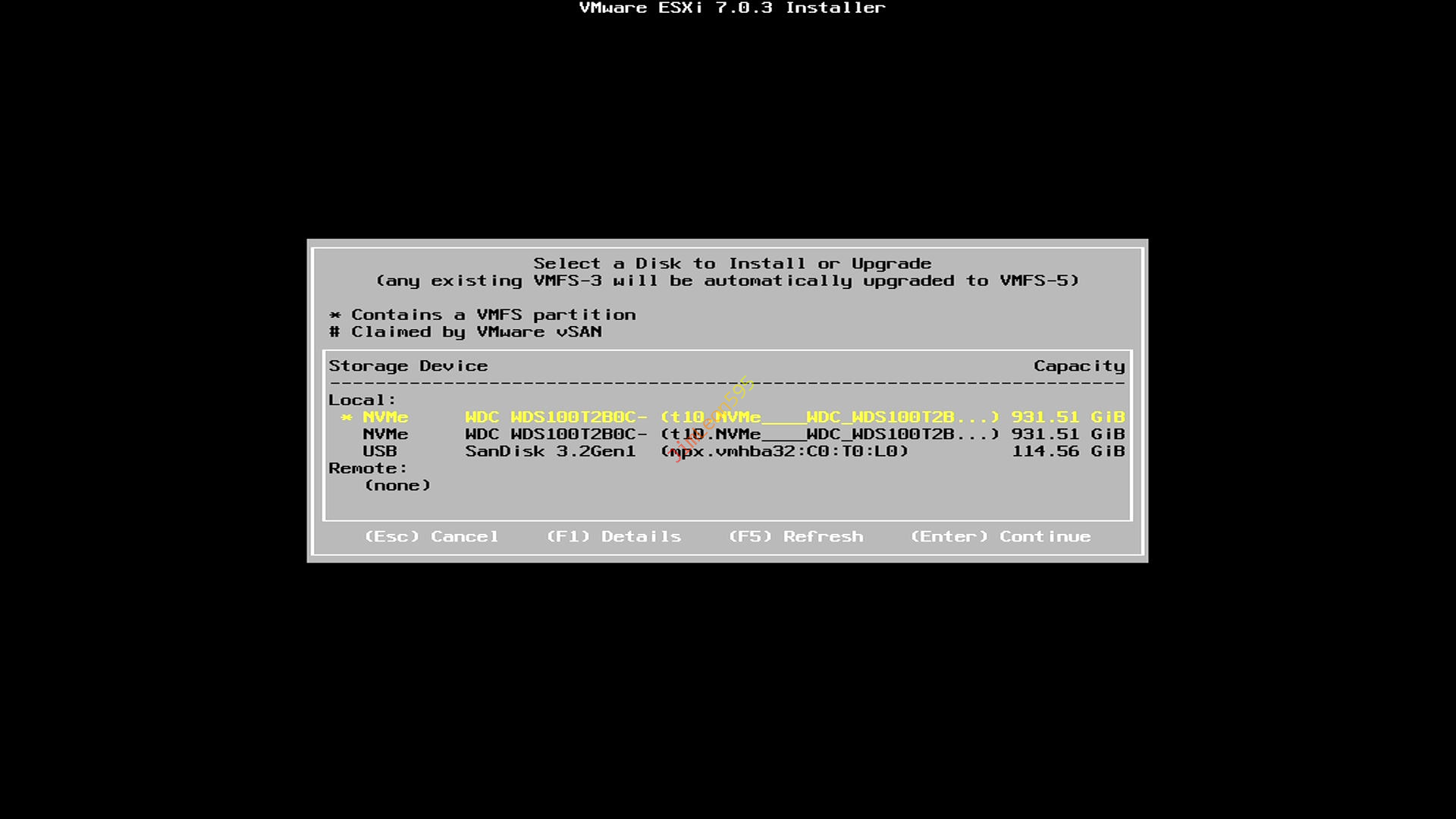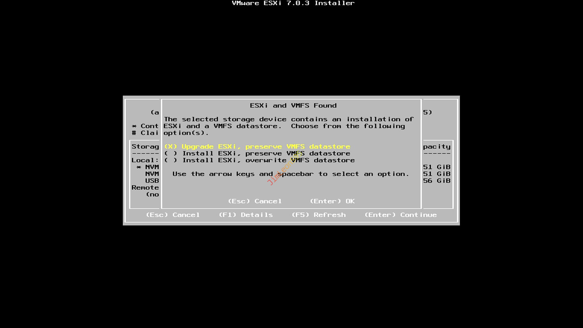 # 安装 ESXi,覆盖 VMFS 存储文件