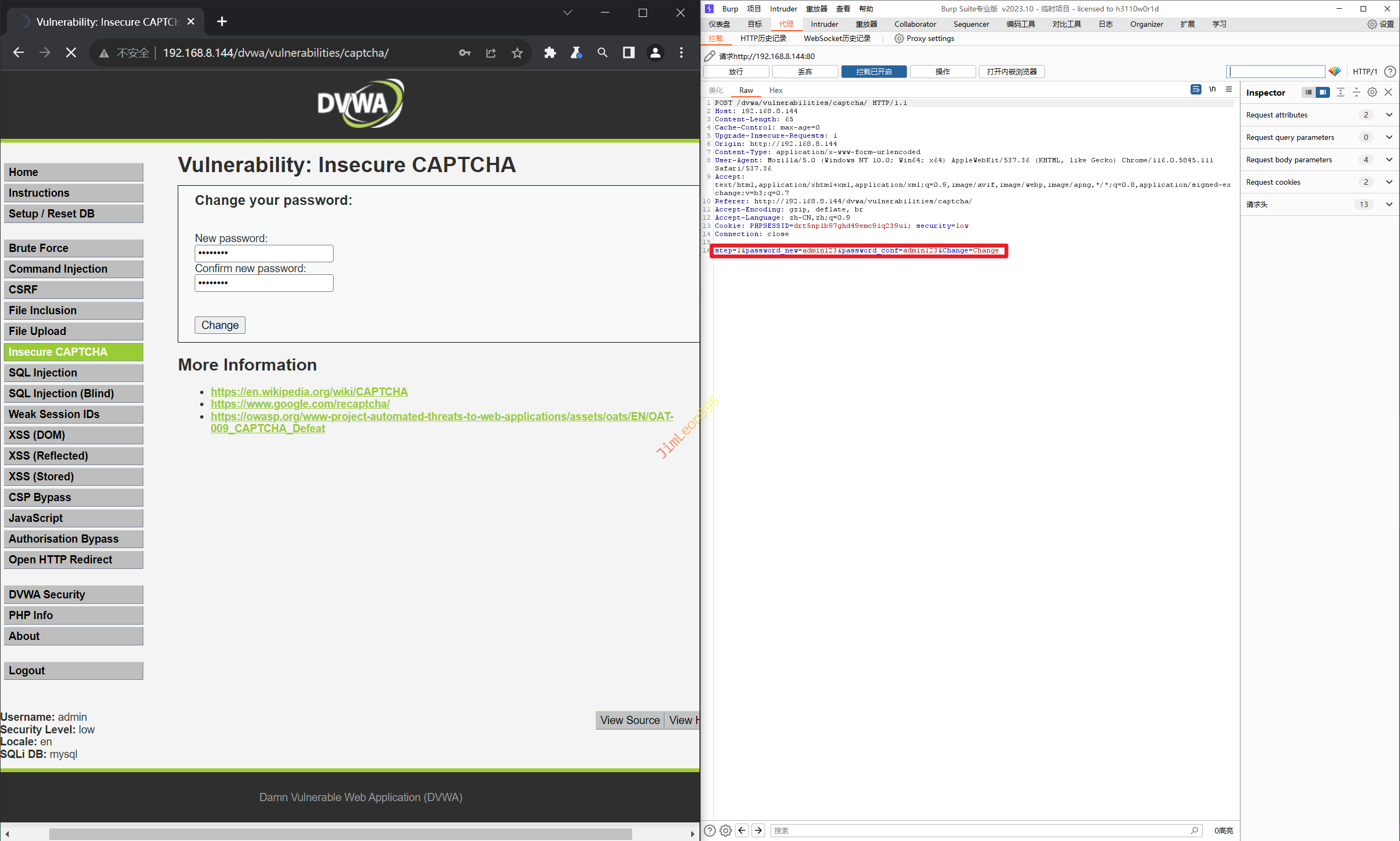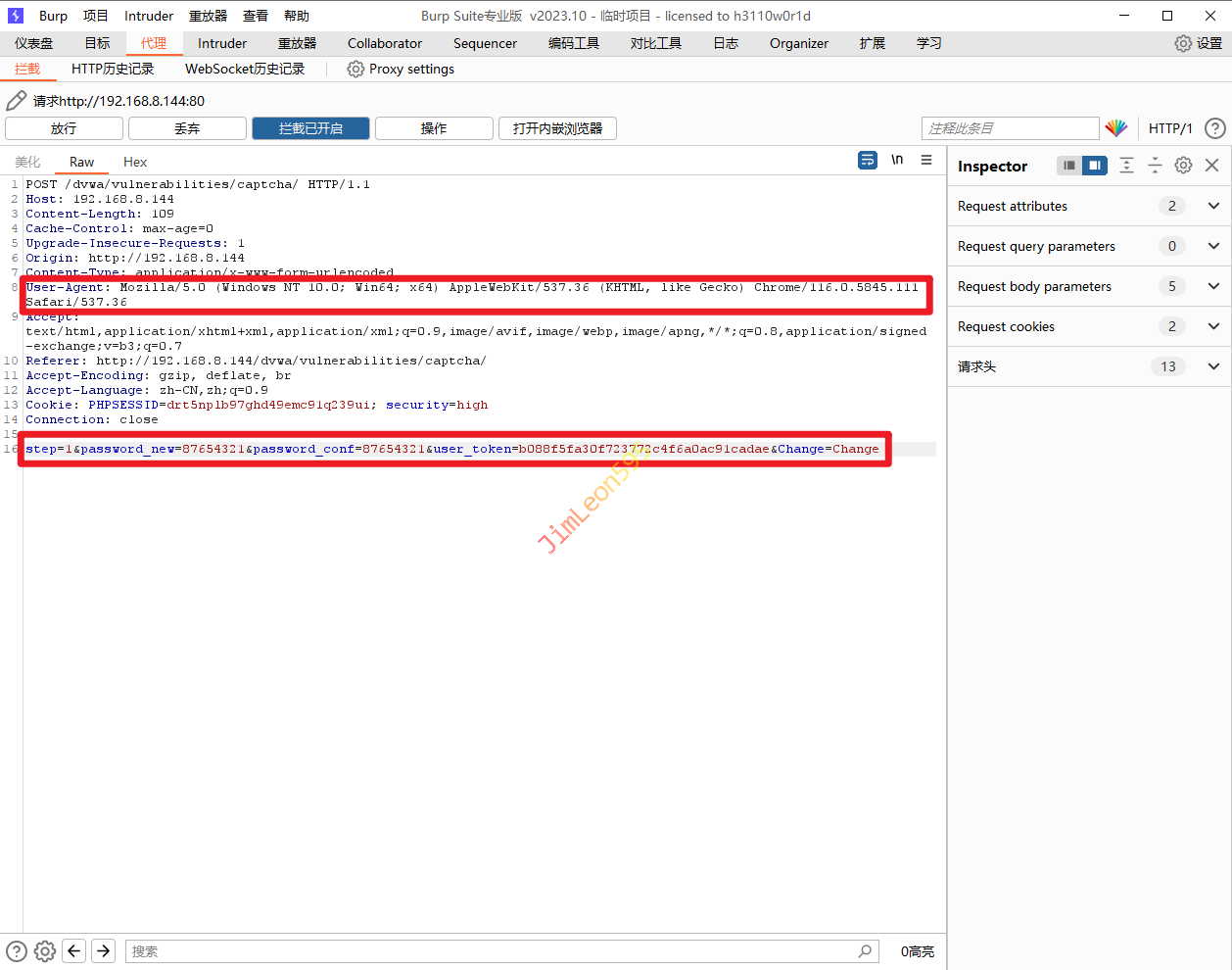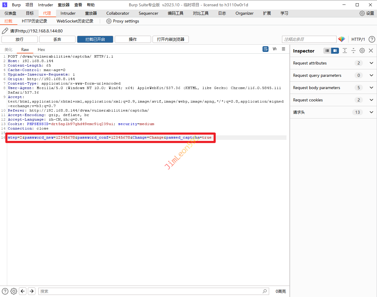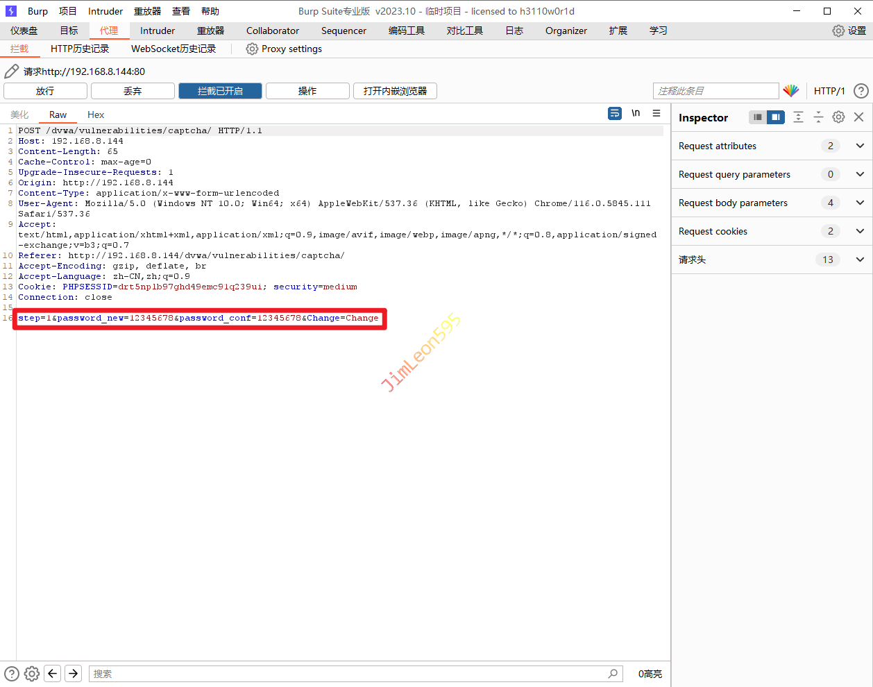 1. 输入我们需要修改的密码并使用 Burpsuite 抓包